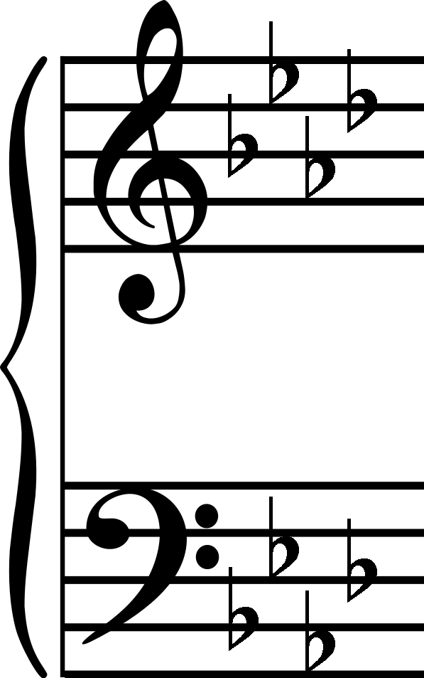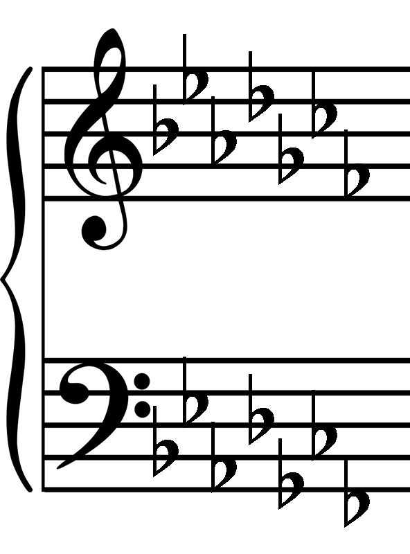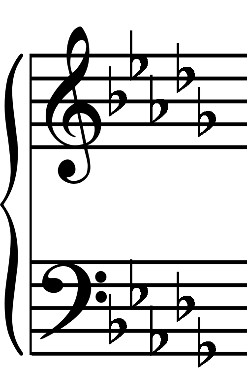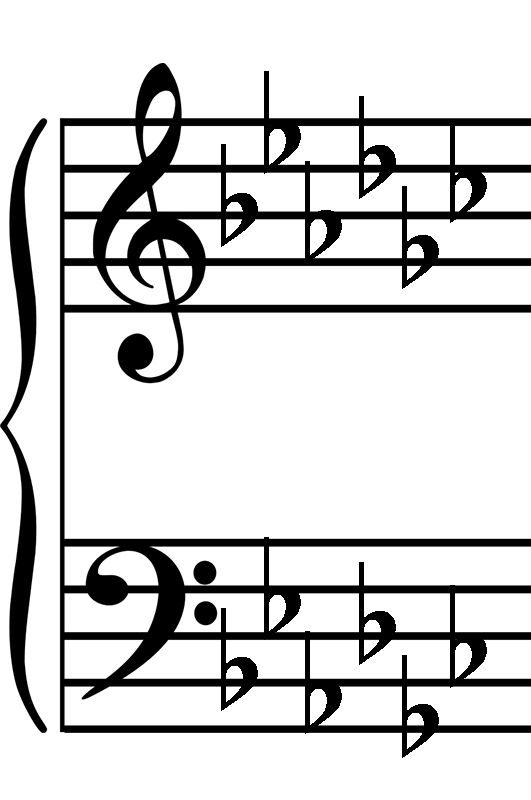 Similar to the Sharps, when a note requires a lowered tone, a Flat is used as an indication for the entire piece of music when used as a Key Signature. See the sample below.