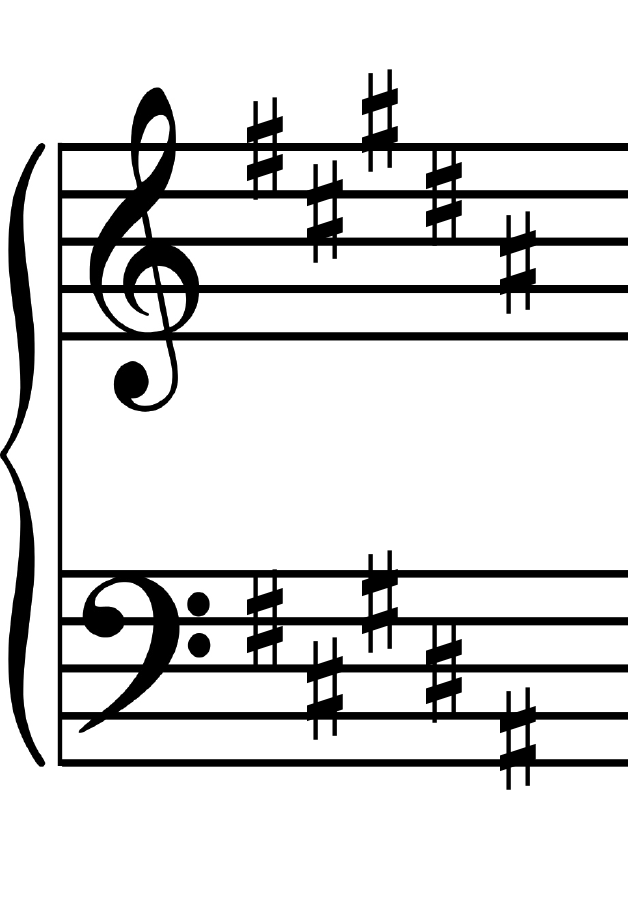 The order of the use of sharps is: F#, C#, G#, D#, A#, E#, and B#. To find the name of the key signature with sharp(s), 1.) go to the last Sharp, 2.) move up one half step to the next key, 3.) the name of that key is the name of the key signature. The following chart can help the memorization of the Sharp Key Signatures.