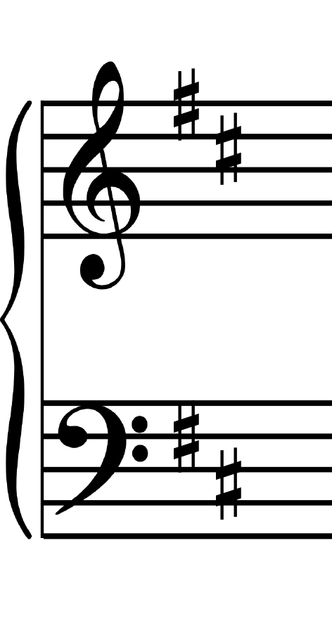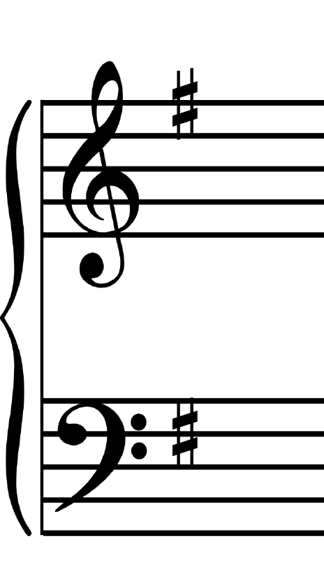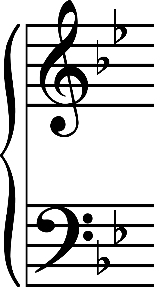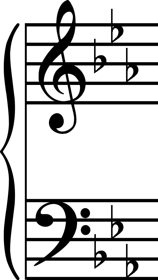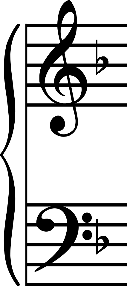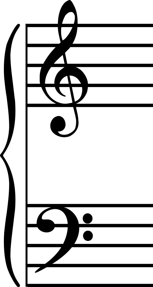 The Grad Staff is the most commonly used staff for keyboard music. It covers a wide variety of pitches. However, it is not limited to one Treble and one Bass clefs as seen below. Both staves can be written with Treble Clefs only, or Bass Clefs only, depends on the song's pitches. The G-clef is the treble clef, with the G-clef placed on the second treble staff line. This is the most common clef in use and is generally the first clef learned by music students. The treble clef was historically used to mark a treble, or high voice part in vocal music. The F-clef is the bass clef, with the clef placed on the fourth bass staff line. Traditionally, the F-clef is used to mark a bass, or low voice part in vocal music.