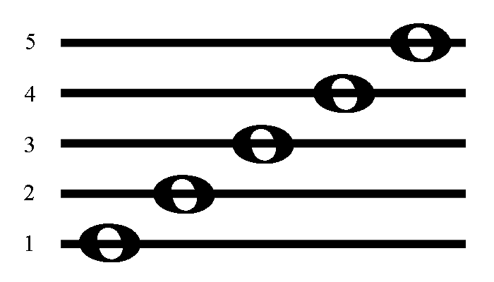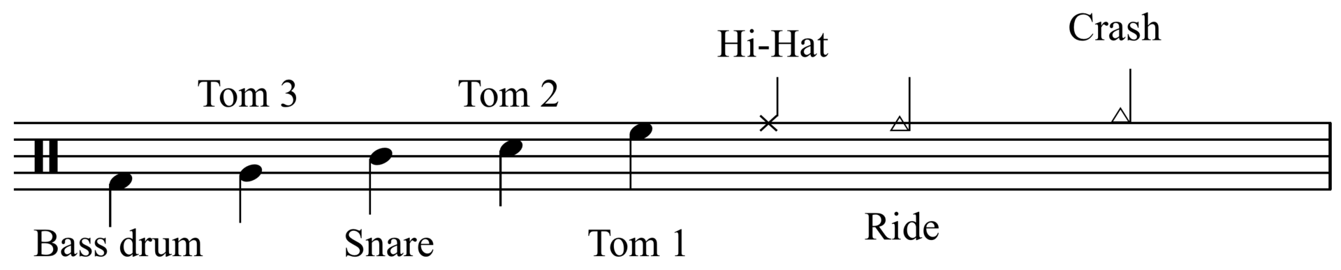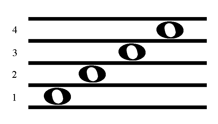 For music notation, the staff is a set of five horizontal lines and four spaces that each represent a different musical pitch, or in the case of a percussion staff, different percussion instruments. When counting the lines and spaces, start from the bottom. See the sample below.