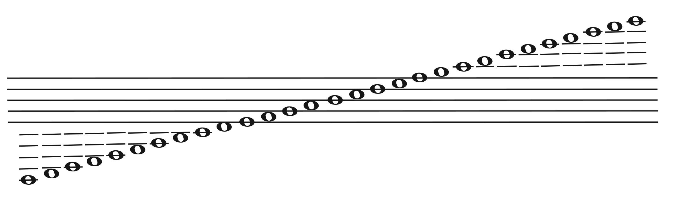 Music pitches have a wide variety of frequencies that require more than the five staff lines and four spaces can offer. The Ledger Lines are designed to add more positions as needed. The ledger lines can be added both above and below the staff. It is best to add no more than five ledger lines to the staff in either direction.