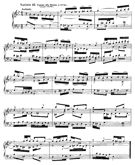 Variation 15 was the first of the three variations that were written in G Minor and Canone alla quinta. It was a Canon to the (interval of a) Fifth.