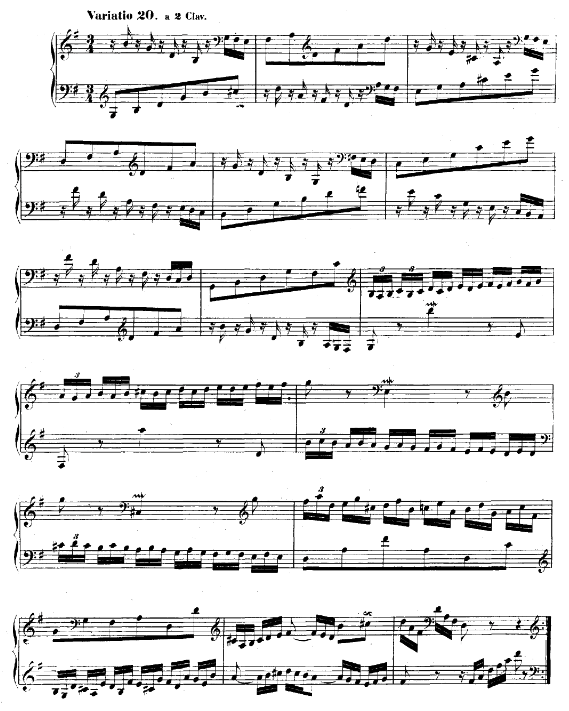 Variation 20 requires keyboard players to cross their hands. However, with two keyboards, like a harpsichord, players would have an easier time playing this variation.