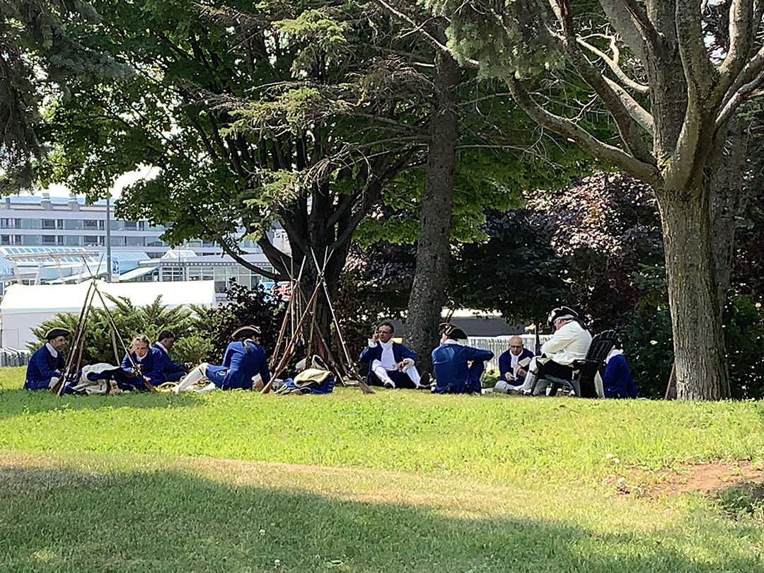 These men are taking a break before a performance of historical events