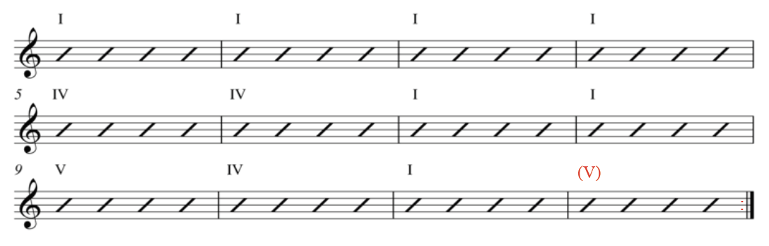 A twelve-measure song maybe too short for many reasons; therefore, the twelfth measure can be replaced by a Dominant Seventh chord and follow by a repeat sign to repeat the melody that was based on the 12-Bar Chord Progression, as necessary.