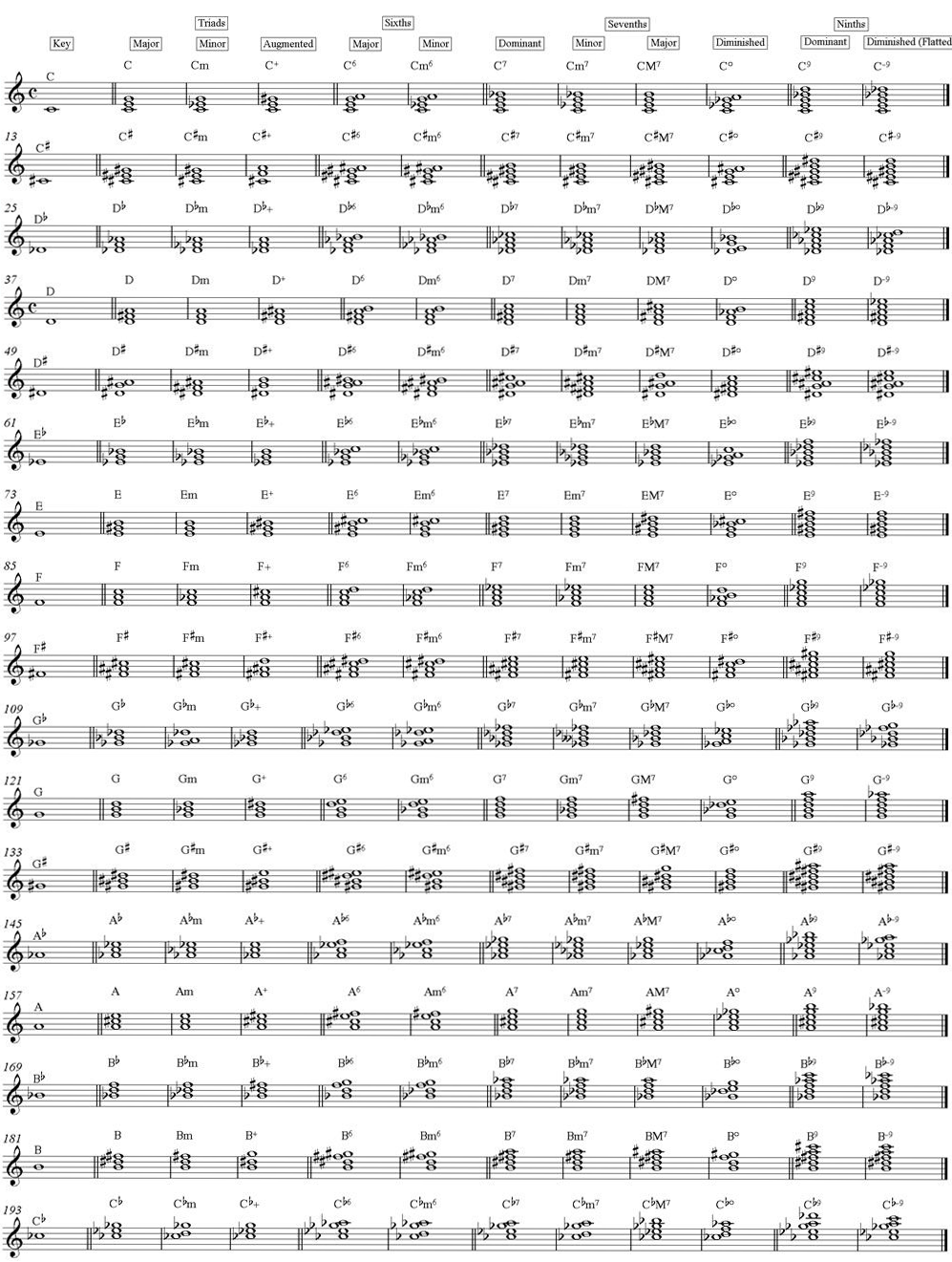 Piano, Harp, Clavichord, Harpsichord, Organ, Marimba |