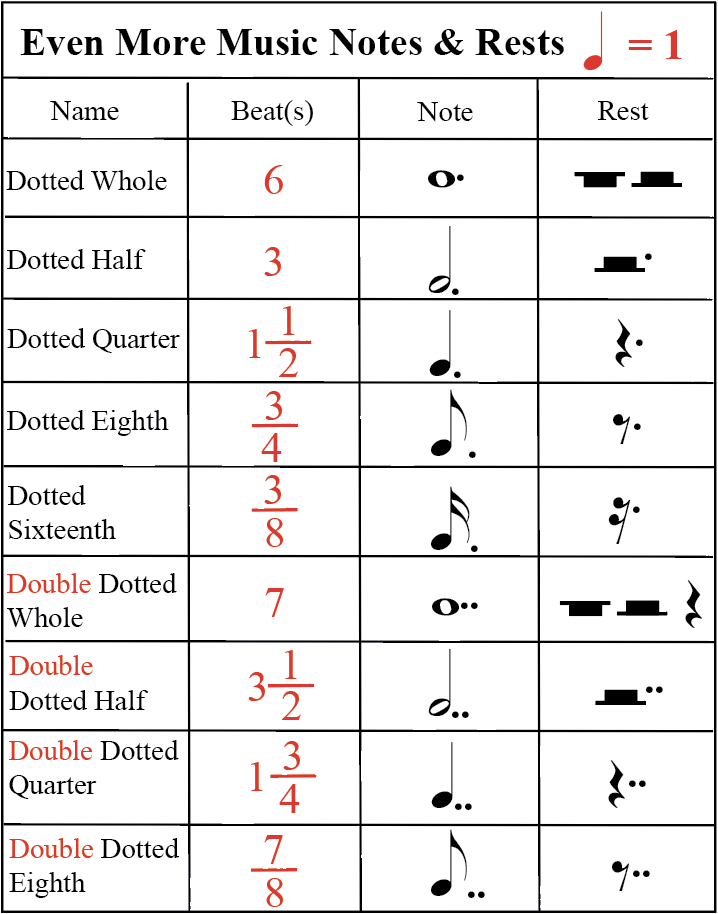 Dotted and Double Dotted Notes and Rests used in Western Music |