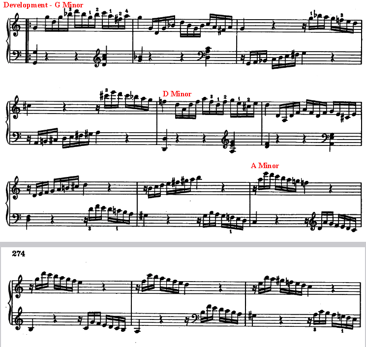 Kaii Lee had combined several piano/keyboard method books and her life long music learning books to create this sequential music theory study for this website. This page is about the Sonata Form. Following traditions of composition techniques from the Baroque Period, the Classical Period composers created the Sonata form, mainly for instrumental purposes. By clicking on the other colored links at the bottom of this page, the other music theory topics can be found easily.