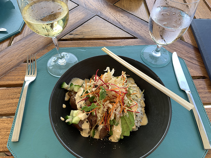 A delicious poke bowl served at the Four Seasons Hotel, Maui