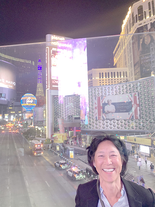 Ms. Lee leaving the Zappo Theater onto the Las Vegas Blvd