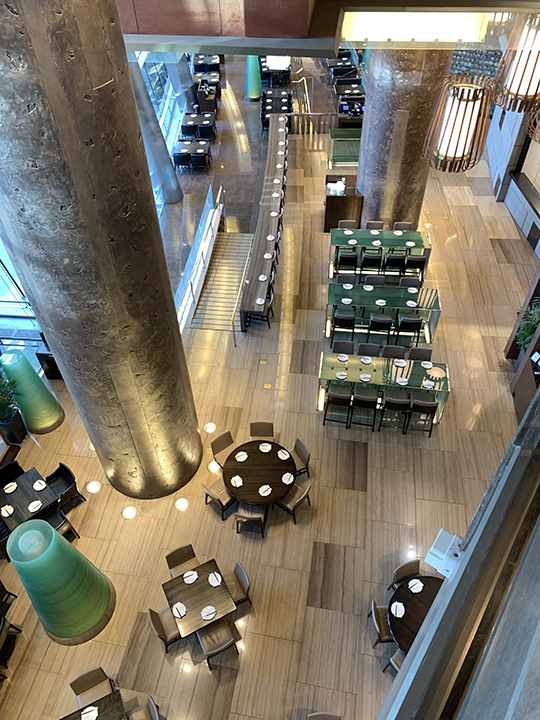 A view from the top of the Ding Tai Fung restaurant, inside of the Aria hotel
