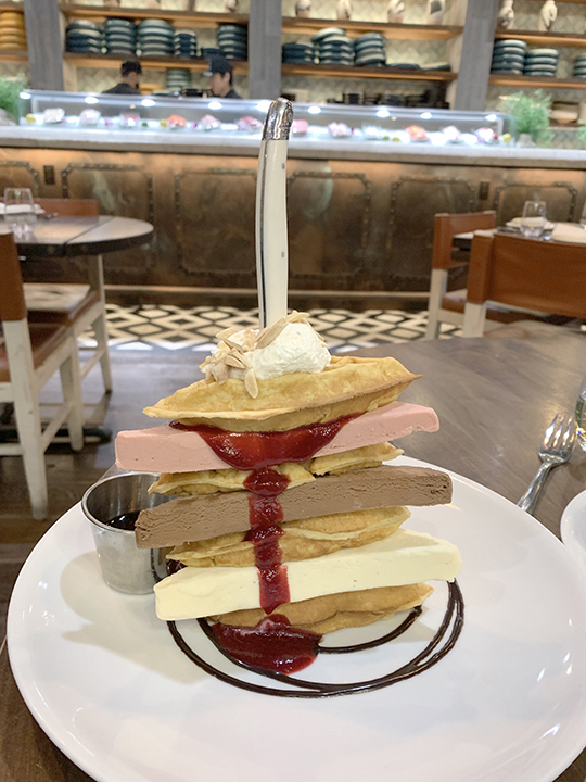 Ms. Lee had the "Waffle Tower" for breakfast and enjoyed the ice cream