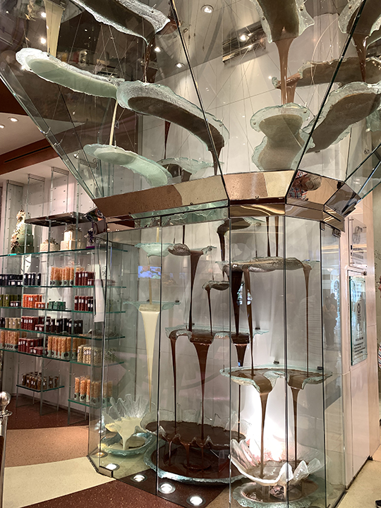 A free tram ride away, the Bellagio chocolate shop has the world's largest chocolate fountain